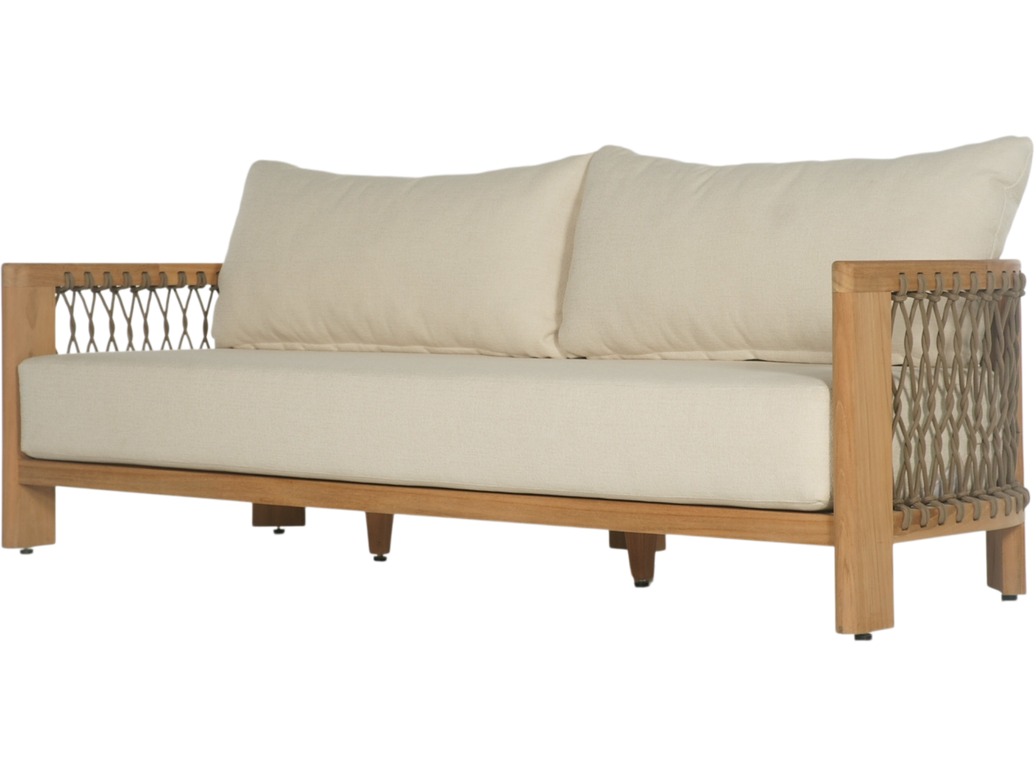 Transform your outdoor space into a coastal paradise with our luxurious patio furniture set. This elegant collection features a plush, beige sofa adorned with stylish patterned cushions, complemented by two matching armchairs with a unique woven design. The solid wood coffee table adds both functionality and charm, making it the perfect centerpiece for your patio. Set against the backdrop of a tranquil beach and azure waters, this ensemble captures the essence of relaxation and sophistication. Elevate your outdoor living experience with this timeless collection, designed for comfort and elegance on every occasion.