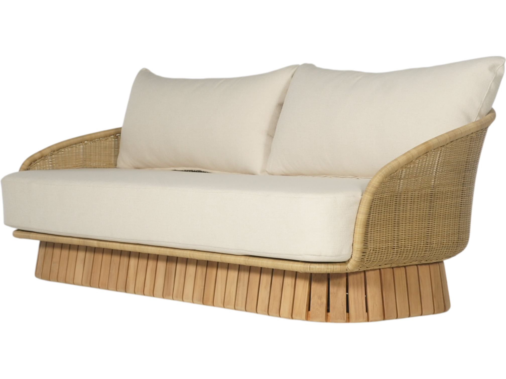 Transform your outdoor space into a coastal paradise with our luxurious patio furniture set. This elegant collection features a plush, beige sofa adorned with stylish patterned cushions, complemented by two matching armchairs with a unique woven design. The solid wood coffee table adds both functionality and charm, making it the perfect centerpiece for your patio. Set against the backdrop of a tranquil beach and azure waters, this ensemble captures the essence of relaxation and sophistication. Elevate your outdoor living experience with this timeless collection, designed for comfort and elegance on every occasion.